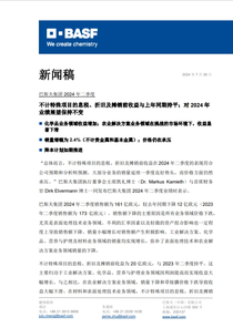 巴斯夫集团 2024 年二季度
