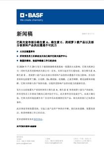 受 2024 年 7 月 29 日发生于德国路德维希港基地一装置的火灾影响,巴斯夫欧洲公司(同时代表其受影响的关联公司)宣布,从即日起至另行通知前,部分维生素 A、维生素 E 、类胡萝卜素产品以及部分香原料产品的供应遭遇不可抗力影响。涉及的香原料包括紫罗兰酮、白花醇、DL-薄荷脑、玫瑰醚、乙基芳樟醇、橙花叔醇和异植醇。巴斯夫积极与客户保持沟通,以提供受影响产品供应能力的最新信息。