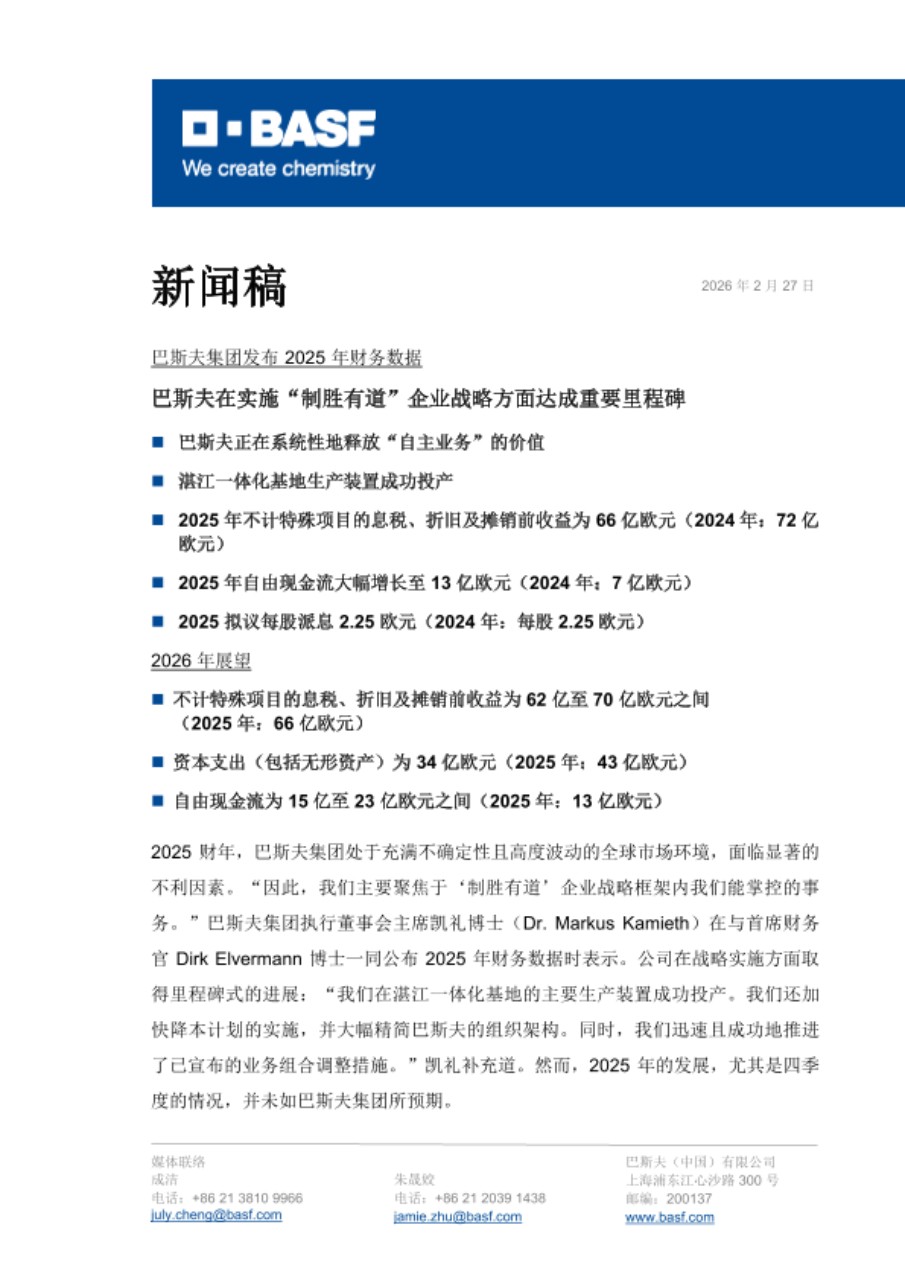 2026 年 2 月 27 日,请访问巴斯夫官网以下链接,获取更多信息: |