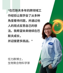 任力群博士找到了大家都在追寻的目标:一份有意义的工作。获得博士学位后,她加入巴斯夫,并在过去的17年里,将自己对生物聚合物的热情转化为研究突破性的可生物降解产品,积极支持循环经济的发展。