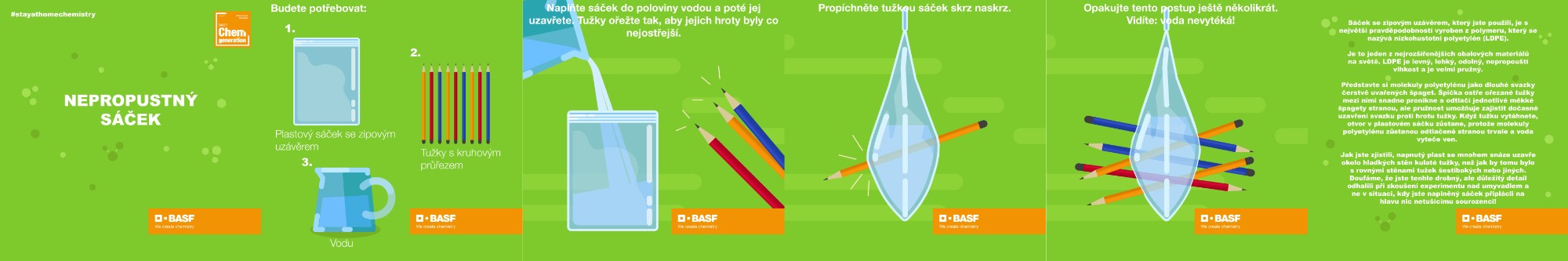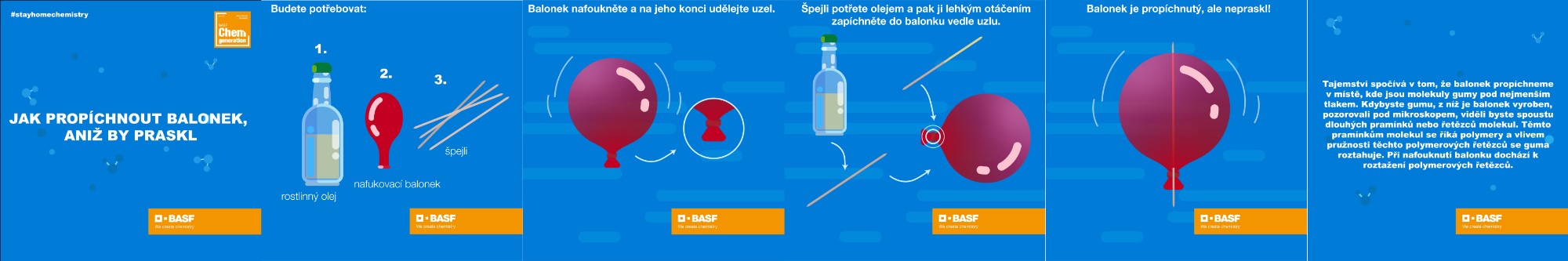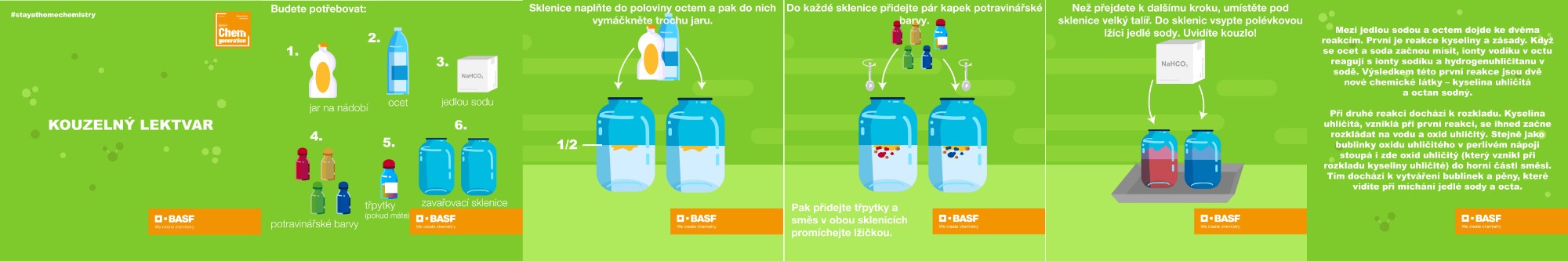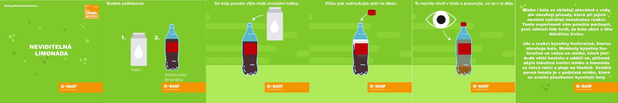 Abychom žákům, učitelům a také rodičům usnadnili učení chemie i takto na dálku, rozhodli jsme se v rámci našeho vědeckého programu Chemgeneration uveřejnit vzdělávací seriál s bezpečnými experimenty, které si snadno uděláte i sami doma. Na naší facebookové stránce najdete přehled zveřejněných pokusů.