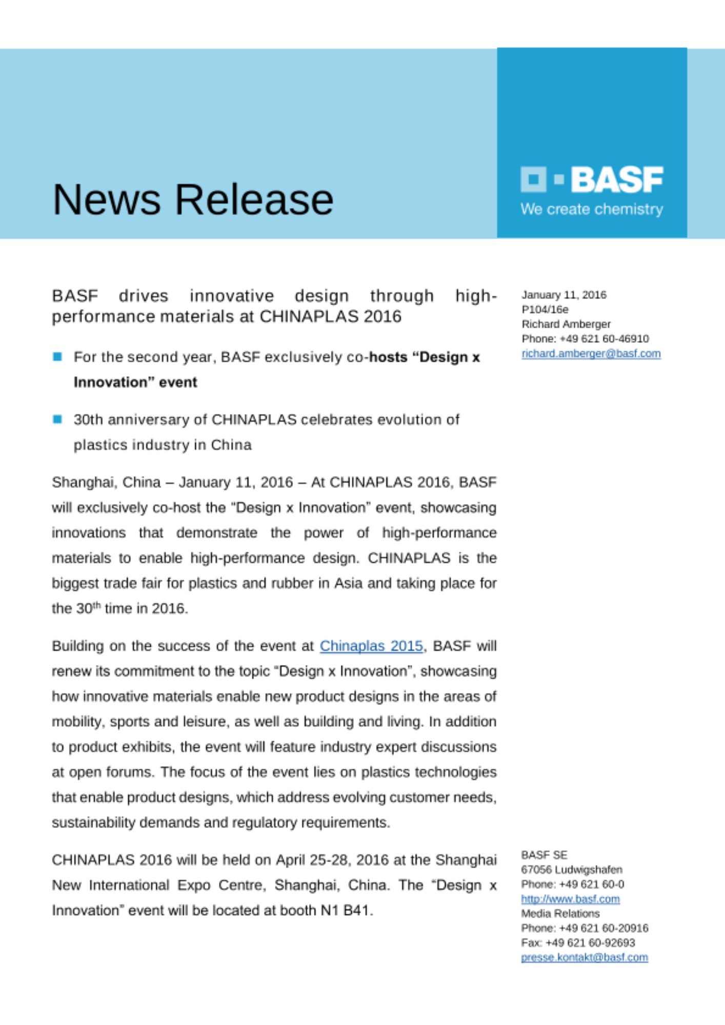 http://ChinaplasOnline.com/DesignXInnovation and https://www.basf.com/cn/en/chinaplas/2016.html