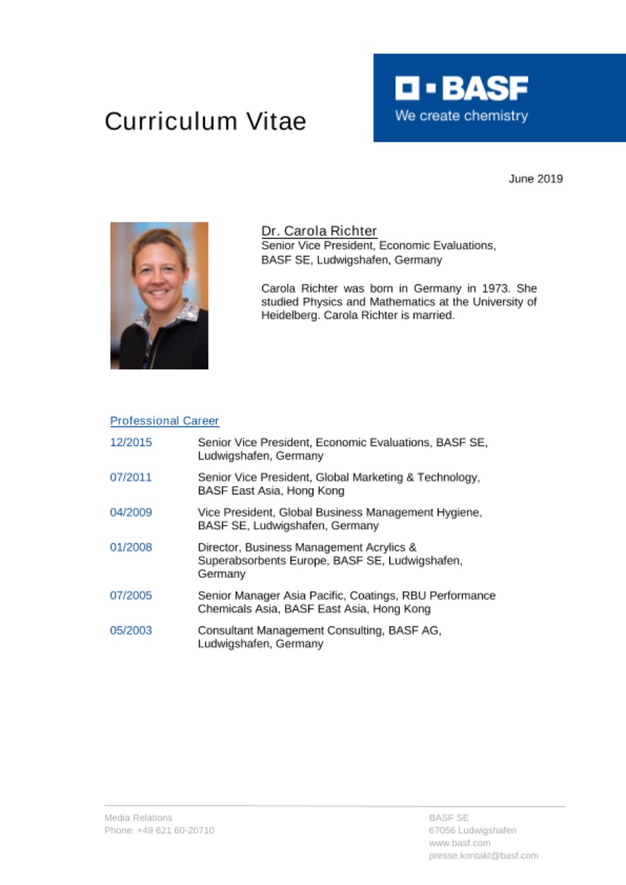 Carola Richter (46), until December 2018 Senior Vice President Economic Evaluations, will, as President, succeed Ramkumar Dhruva effective July 1, 2019.