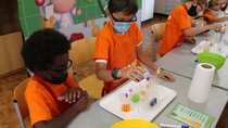 Class 3 students from German School Nairobi carrying out the Vitamin C champion Expermiment.