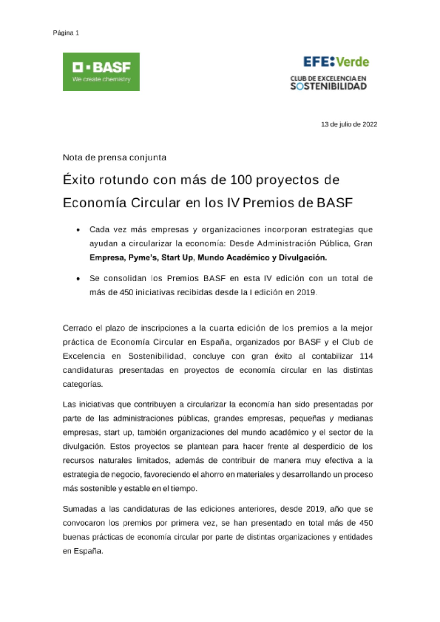 - Se consolidan los Premios BASF en esta IV edición con un total de más de 450 iniciativas recibidas desde la I edición en 2019.