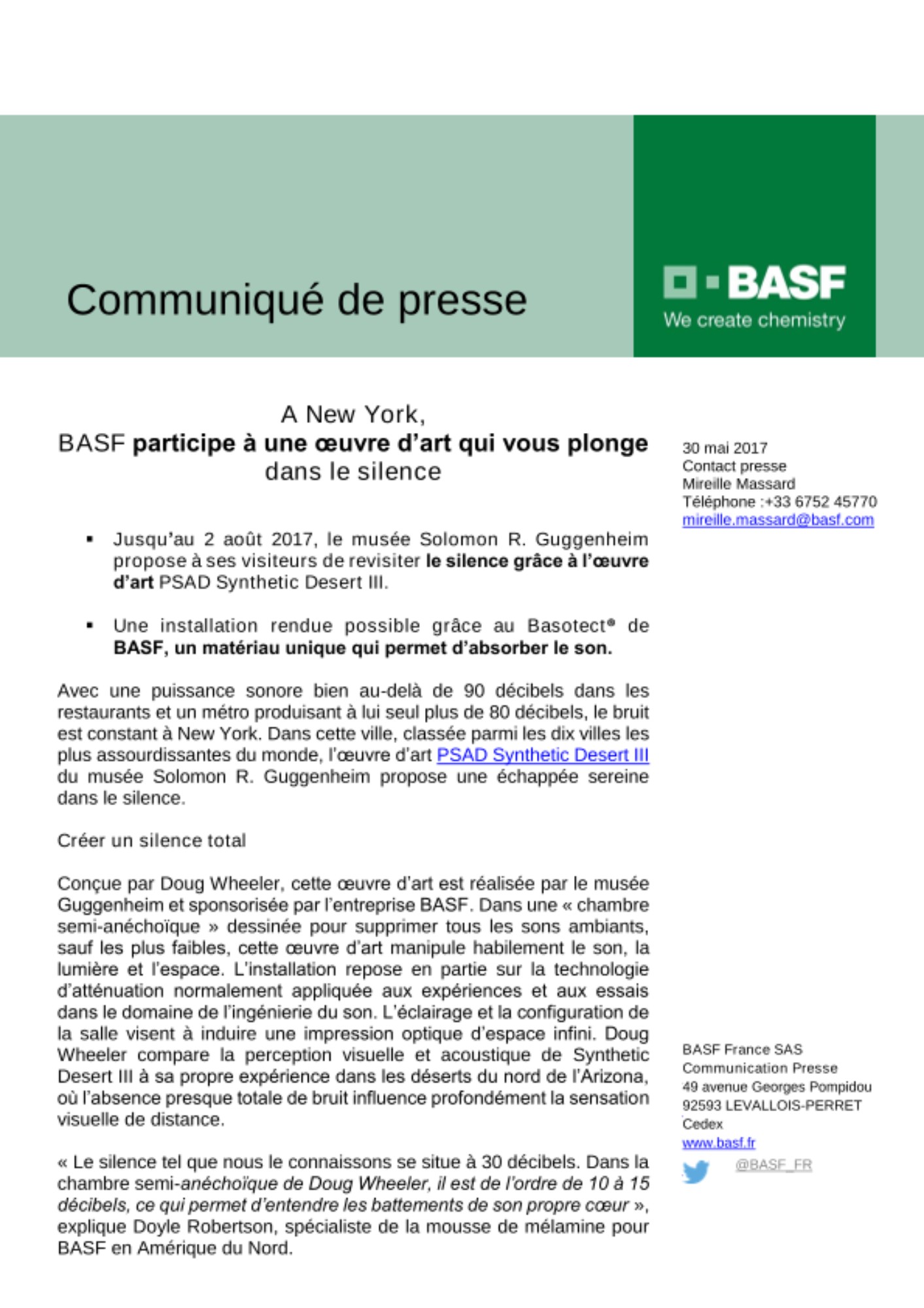 A New York, BASF participe à une oeuvre d’art qui vous plonge dans le silence