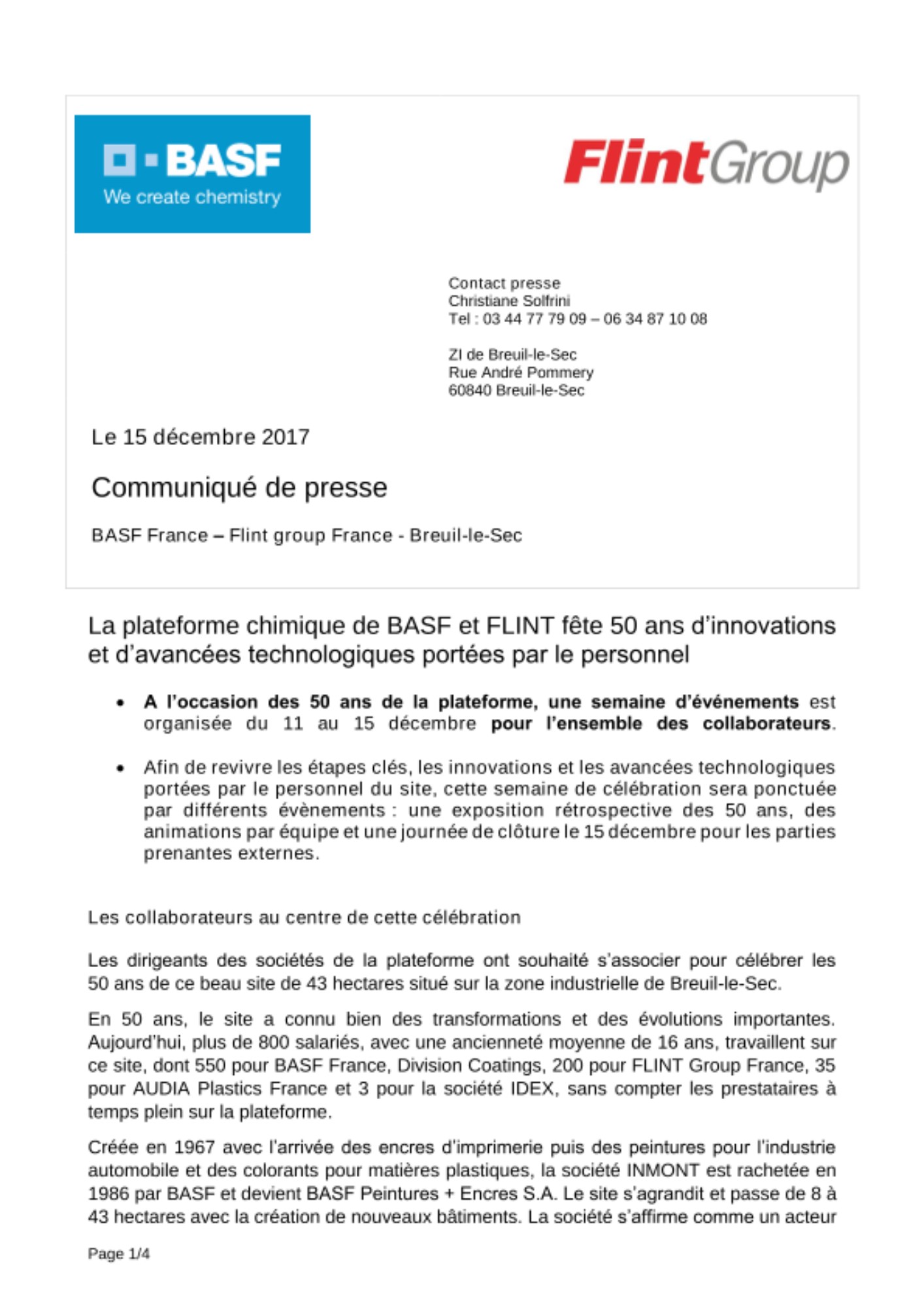 En 50 ans, le site a connu bien des transformations et des évolutions importantes. Aujourd’hui, plus de 800 salariés, avec une ancienneté moyenne de 16 ans, travaillent sur ce site, dont 550 pour BASF France, Division Coatings, 200 pour FLINT Group France, 35 pour AUDIA Plastics France et 3 pour la société IDEX, sans compter les prestataires à temps plein sur la plateforme.