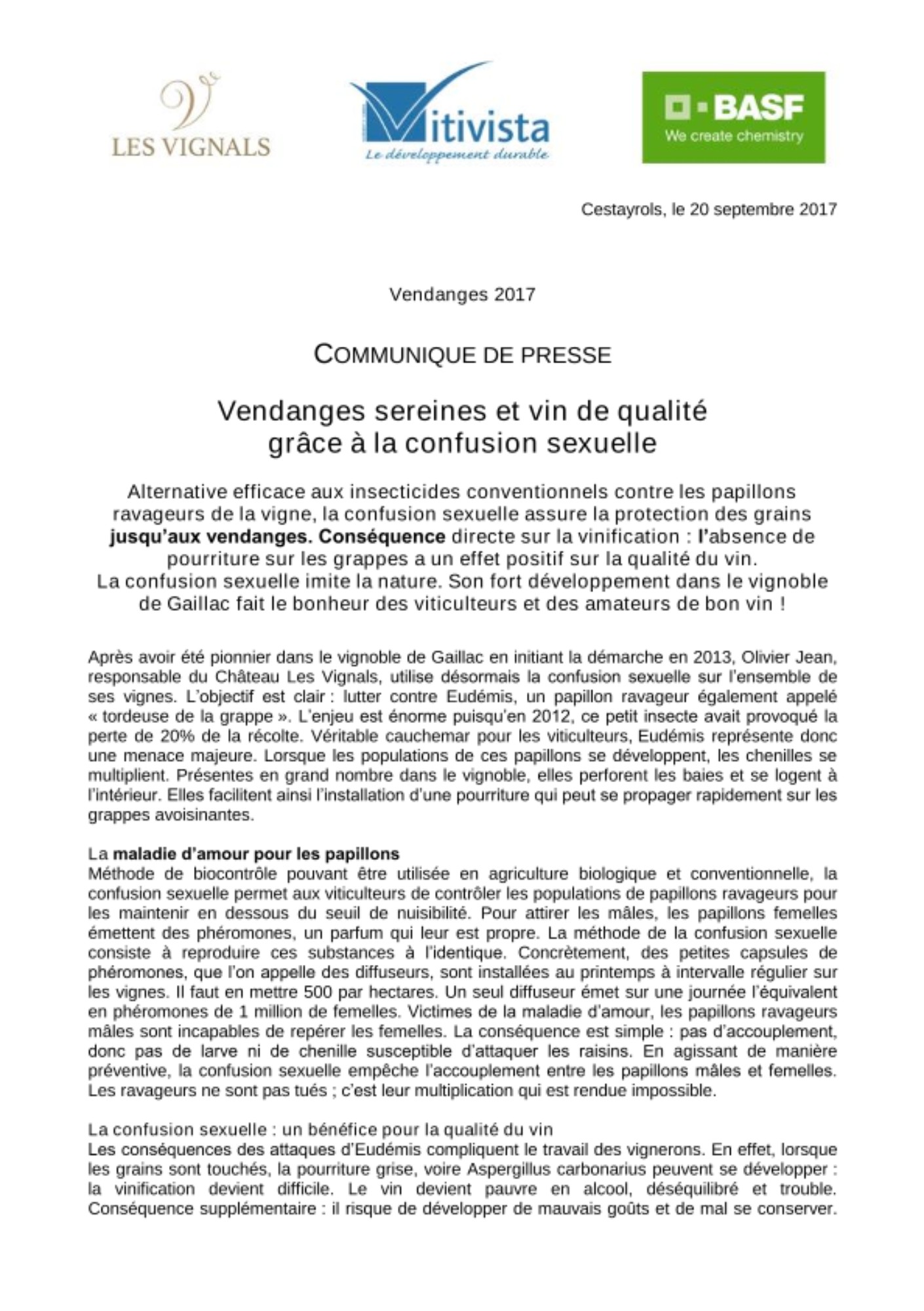 vendanges tardives » précise Olivier Jean. La confusion sexuelle séduit le Gaillacois avec