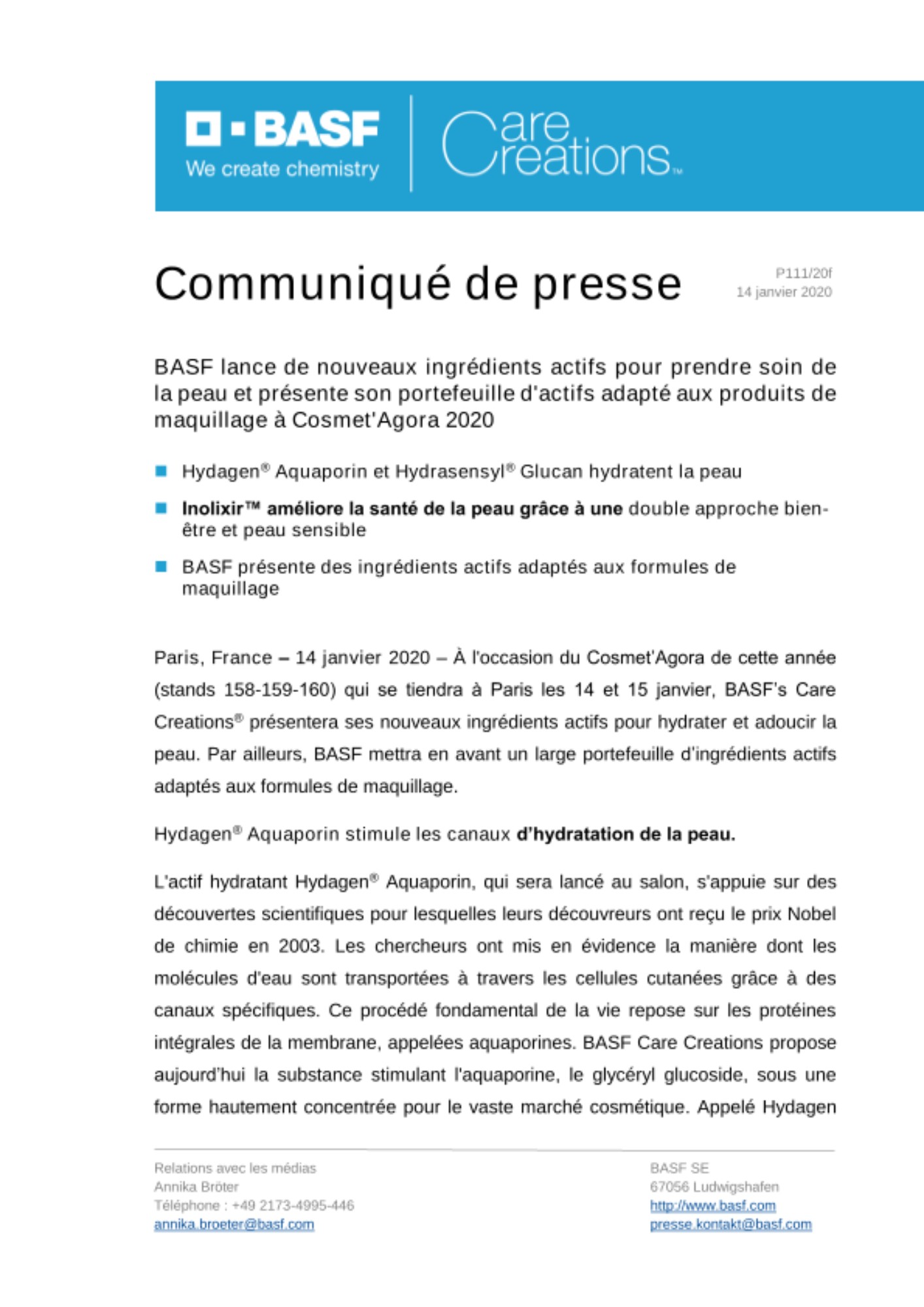 Millennials » et mettra en avant un éventail de solutions d’ingrédients naturels sur les stands 158-159-160. « Le secteur des produits cosmétiques reste une industrie en constante évolution dont l’impact va bien au-delà des routines de beauté quotidiennes », a affirmé Marine Belthé, responsable marketing opérationnel France chez BASF Personal Care Europe. « La génération Y voit le secteur de la beauté comme un moyen de célébrer la diversité, son choix de produits est essentiellement lié à l'expression de son attachement émotionnel et à son sens des responsabilités environnementales. Grâce à notre large portefeuille et à notre expertise, nous aidons nos clients à développer des solutions personnalisées qui répondent aux demandes croissantes des consommateurs. »