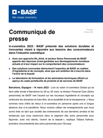 in-cosmetics 2023 : BASF présente des solutions durables et innovantes visant à répondre aux besoins des consommateurs dans l’industrie cosmétique