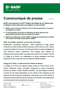 - BASF se joint à France Chimie les 10 et 11 février prochains à l’occasion du Village de la Chimie
