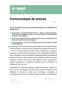 - Depuis 2014, le site industriel BASF France – Division Coatings de Breuil-le-Sec (60) est engagé en faveur de la préservation de sa biodiversité ordinaire ou remarquable