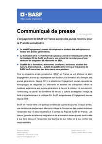 « Nous sommes fiers de labelliser cette année 36 entreprises, dont BASF, dont la politique de développement des juniors sans cesse retravaillée est une nouvelle fois reconnue dans le cadre de cette distinction. » Engagement Jeunes