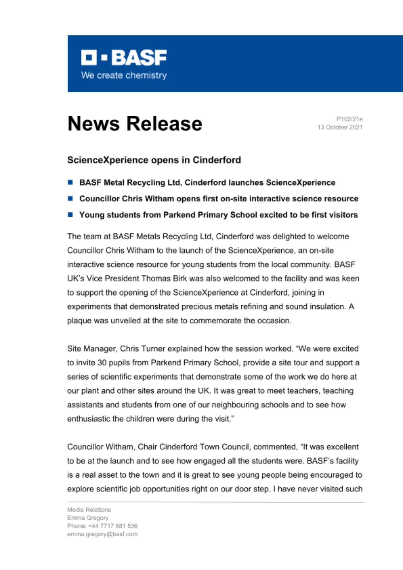 - BASF Metal Recycling Ltd, Cinderford launches ScienceXperience