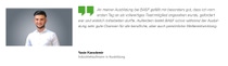 Wir begleiten dich aktiv bei der Integration, beispielsweise durch ein gemeinsames Kennenlern-Event zu Ausbildungsbeginn. Außerdem stehen dir engagierte Kollegen:innen und Ausbilder:innen mit Rat und Tat zur Seite, um dein Wissen und deine Fähigkeiten zu erweitern.