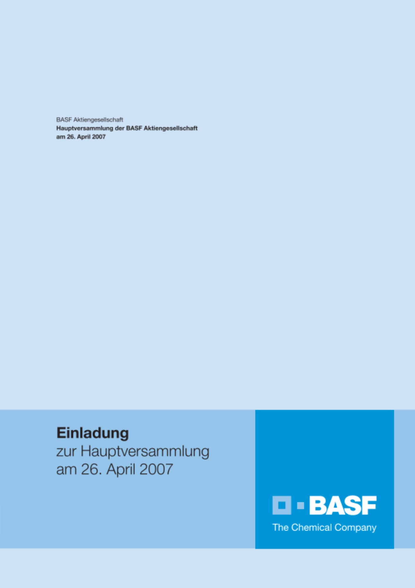 An der 55. ordentliche Hauptversammlung am 26. April 2007 im Congress Center Rosengarten in Mannheim haben 7.000 Besucher teilgenommen. Wir freuen uns sehr, dass insgesamt 48,37 Prozent des Grundkapitals vertreten war.