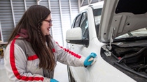 Bei diesem Kurs geht es jedoch nicht nur darum, neue Fähigkeiten zu erwerben. Für Katherine Jara, eine frisch gebackene Absolventin, war er eine Art Rettung. Als ihr Vater starb, riss dies eine große Lücke in ihr Familienleben. Sie verließ ihr Haus wochenlang nicht. Dann stieß sie im Internet auf eine Anzeige für den Kurs. Der Autolackierkurs fiel ihr zwischen Pflege- und Sekretariatsseminaren sofort auf. „Ich habe mich schon immer für Jobs interessiert, die als Männerberufe gelten. Wahrscheinlich, weil ich meinem Vater auf dem Bau geholfen habe“, sagt sie. Inzwischen arbeitet Katherine bei SK Bergé.
