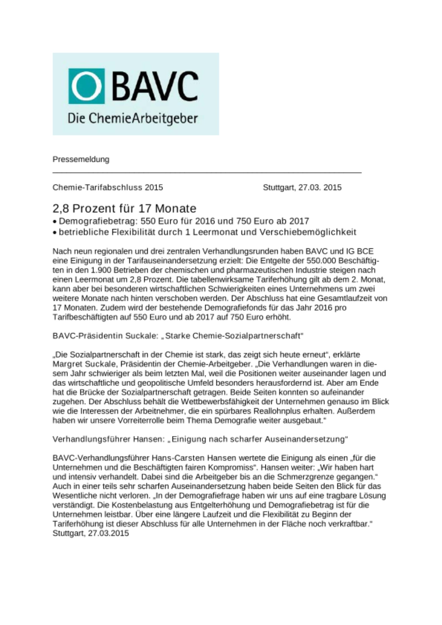 Quelle: BAVC “Die Chemie Arbeitgeber” March 27, 2015