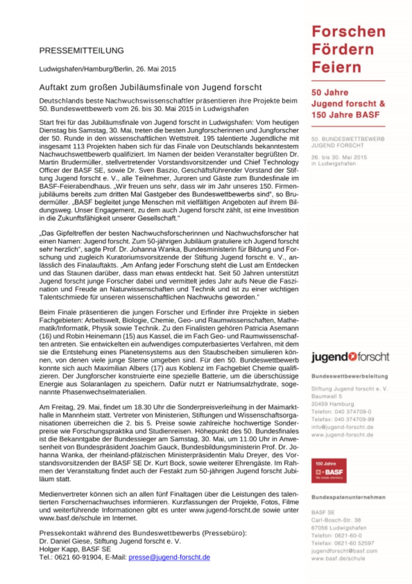 Tel.: 0621 60-91904, E-Mail: presse@jugend-forscht.de