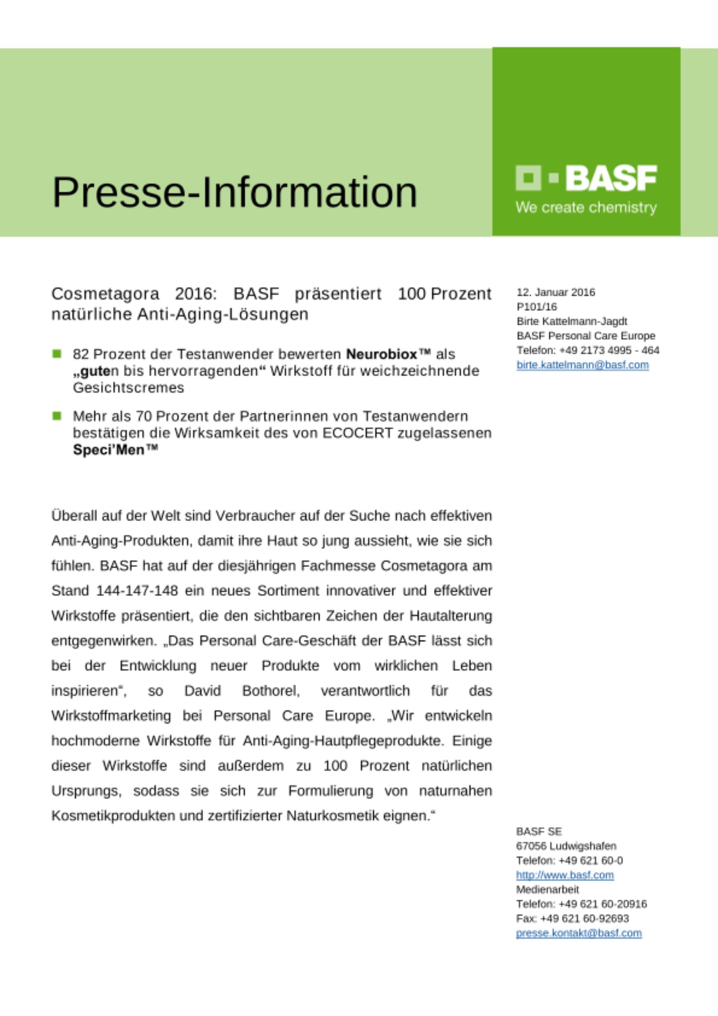 Cosmetagora 2016: BASF präsentiert 100 Prozent natürliche Anti-Aging-Lösungen