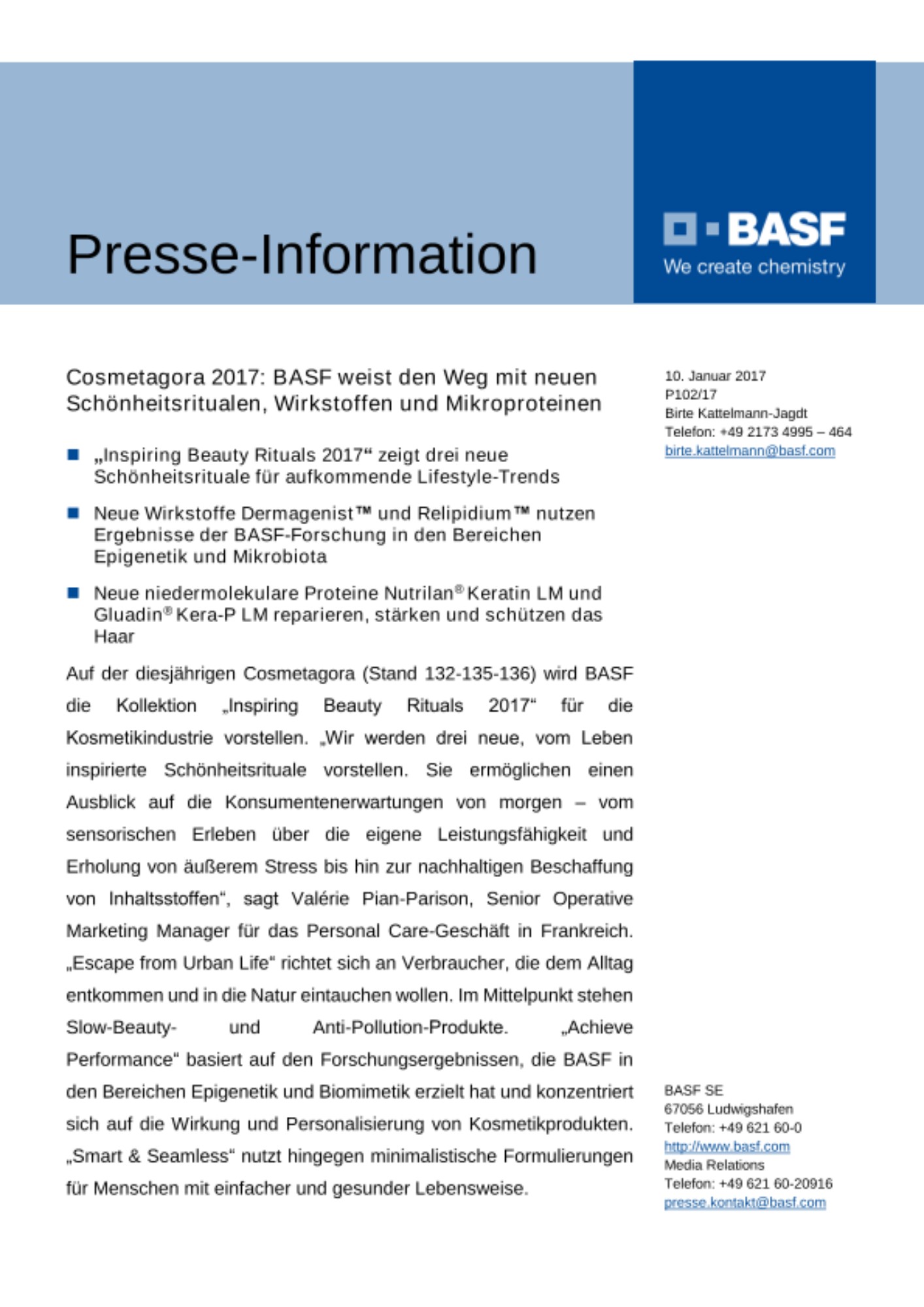 Cosmetagora 2017: BASF weist den Weg mit neuen Schönheitsritualen, Wirkstoffen und Mikroproteinen