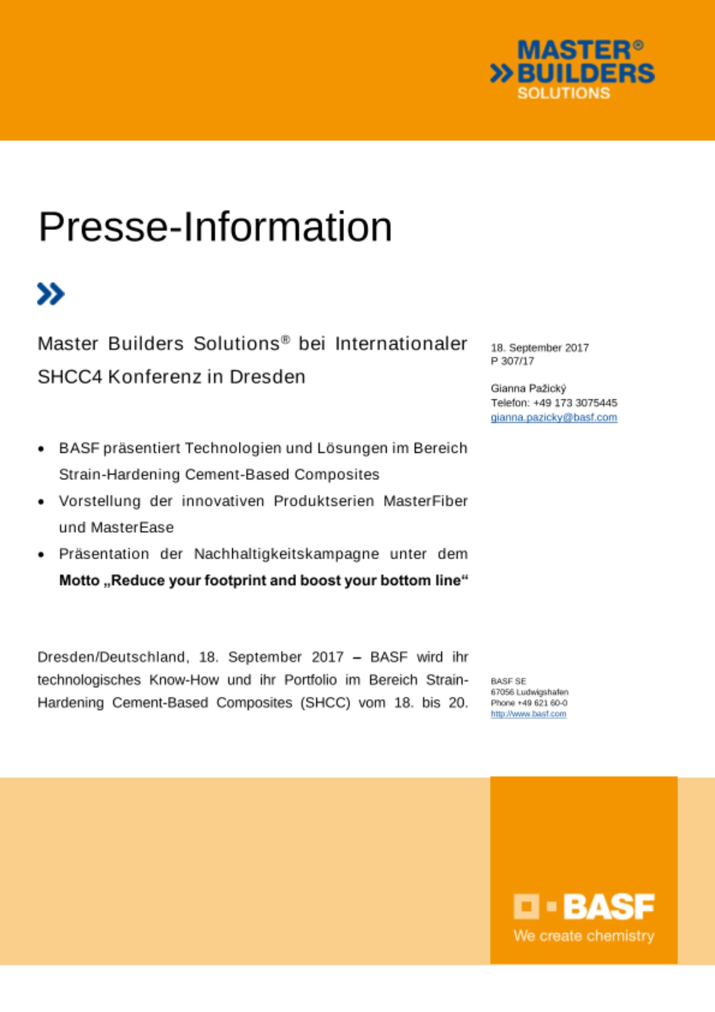 - BASF präsentiert Technologien und Lösungen im Bereich Strain-Hardening Cement-Based Composites