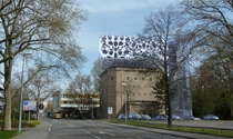 Auf den Bunker wird ein Quader mit einer Kantenlänge von 22 Metern gesetzt, in dem auf zwei Etagen eine Fläche von rund 1.000 Quadratmetern entsteht. Erschlossen wird der Gebäudeteil über einen Treppenturm und einen Aufzug. Die vorgehängte Fassade besteht aus organisch wirkenden Formen und spielt mit Licht und Schattenwirkungen. Der Netzwerkgedanke und die Kunststoff-Materialwelt spiegeln sich so in der Fassade wider.