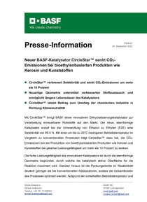 Neuer BASF-Katalysator CircleStar™ senkt CO2-Emissionen bei bioethylenbasierten Produkten wie Kerosin und Kunststoffen