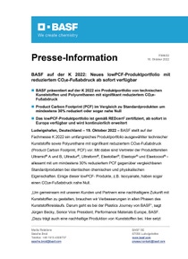 - BASF präsentiert auf der K 2022 ein Produktportfolio von technischen Kunststoffen und Polyurethanen mit signifikant reduziertem CO2e-Fußabdruck