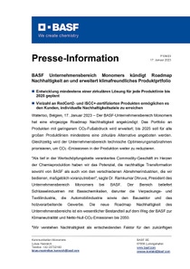 BASF Unternehmensbereich Monomers kündigt Roadmap Nachhaltigkeit an und erweitert klimafreundliches Produktportfolio
