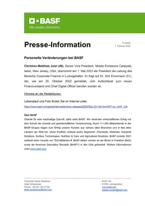 Christian-Matthias Jutzi (46), Senior Vice President, Mobile Emissions Catalysts, Iselin, New Jersey, USA, übernimmt am 1. Mai 2023 als President die Leitung des Bereichs Corporate Finance in Ludwigshafen. Er folgt auf Dr. Dirk Elvermann (51), der, wie am 20. Oktober 2022 gemeldet, vom Aufsichtsrat zum neuen Finanzvorstand und Chief Digital Officer berufen worden ist.