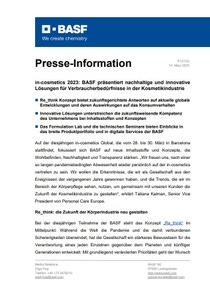 in-cosmetics 2023: BASF präsentiert nachhaltige und innovative Lösungen für Verbraucherbedürfnisse in der Kosmetikindustrie