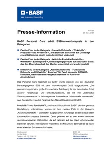 Das Personal Care Geschäft der BASF wurde dreifach von der deutschen Beratungsagentur BSB mit dem Innovationspreis 2023 ausgezeichnet. „Die Auszeichnung ist eine große Ehre und eine Belohnung für die fantastische Arbeit unserer Forschungs- und Entwicklungsteams, die mit viel Leidenschat Verbraucherwünsche in leistungsstarke kosmetische Inhaltsstoffe umwandeln“, sagt Renata Oki, Head of Personal Care Market Development EMEA.