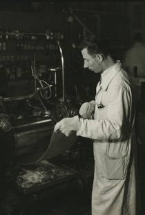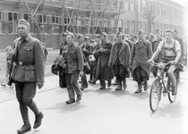 Kriegsgefangene aus Belgien (hier im Bild, Mai 1940), Frankreich, Polen, der Sowjetunion und Italien, Letztere als sogenannte Militärinternierte, müssen in den pfälzischen I.G.-Werken arbeiten. [Quelle: BASF Corporate History / Fotograf: unbekannt]