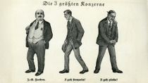 Diese satirische Postkarte von Anfang der 1930er-Jahre setzt die überragende Größe von I.G. Farben und die Massenarbeitslosigkeit infolge der Weltwirtschaftskrise kritisch in Bezug.