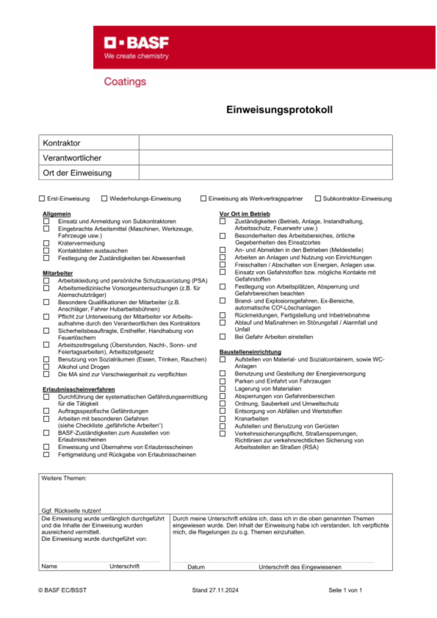Anhang 01 zum Handbuch Kontraktorenmanagement der BASF Coatings GmbH