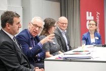 Im Anschluss an das Podiumsgespräch hatten die Zuschauer Gelegenheit, Fragen zu stellen. Gemeinsam mit den Experten diskutierten sie über ihre persönlichen Erwartungen und Reformwünsche an die EU sowie über Europas Stellenwert für Deutschland und den Industriestandort Düsseldorf.