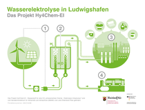 In Zusammenarbeit mit Siemens Energy haben wir eine Wasserelektrolyse am Standort Ludwigshafen mit einer Leistung von 54 Megawatt gebaut und sie in das Verbundsystem integriert. Das Projekt Hy4Chem-EI wird vom Bundesministerium für Wirtschaft und Klimaschutz (BMWK) und dem Land Rheinland-Pfalz gefördert. Der klimafreundliche Wasserstoff wird als Rohstoff zur Herstellung von Produkten mit einem niedrigen CO2-Fußbadruck eingesetzt. Zudem wird er in geringerem Umfang für regionale Mobilitätskonzepte in der Metropolregion Rhein-Neckar genutzt.