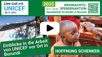 Mit der Weihnachtsspendenaktion 2025 fördern wir die Arbeit von UNICEF in Burundi und helfen mangelernährten Kindern in Burundi.