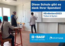 Schule, die von der BASF Stiftung finanziert wurde, in einer von 205 Containerstädten in Hatay