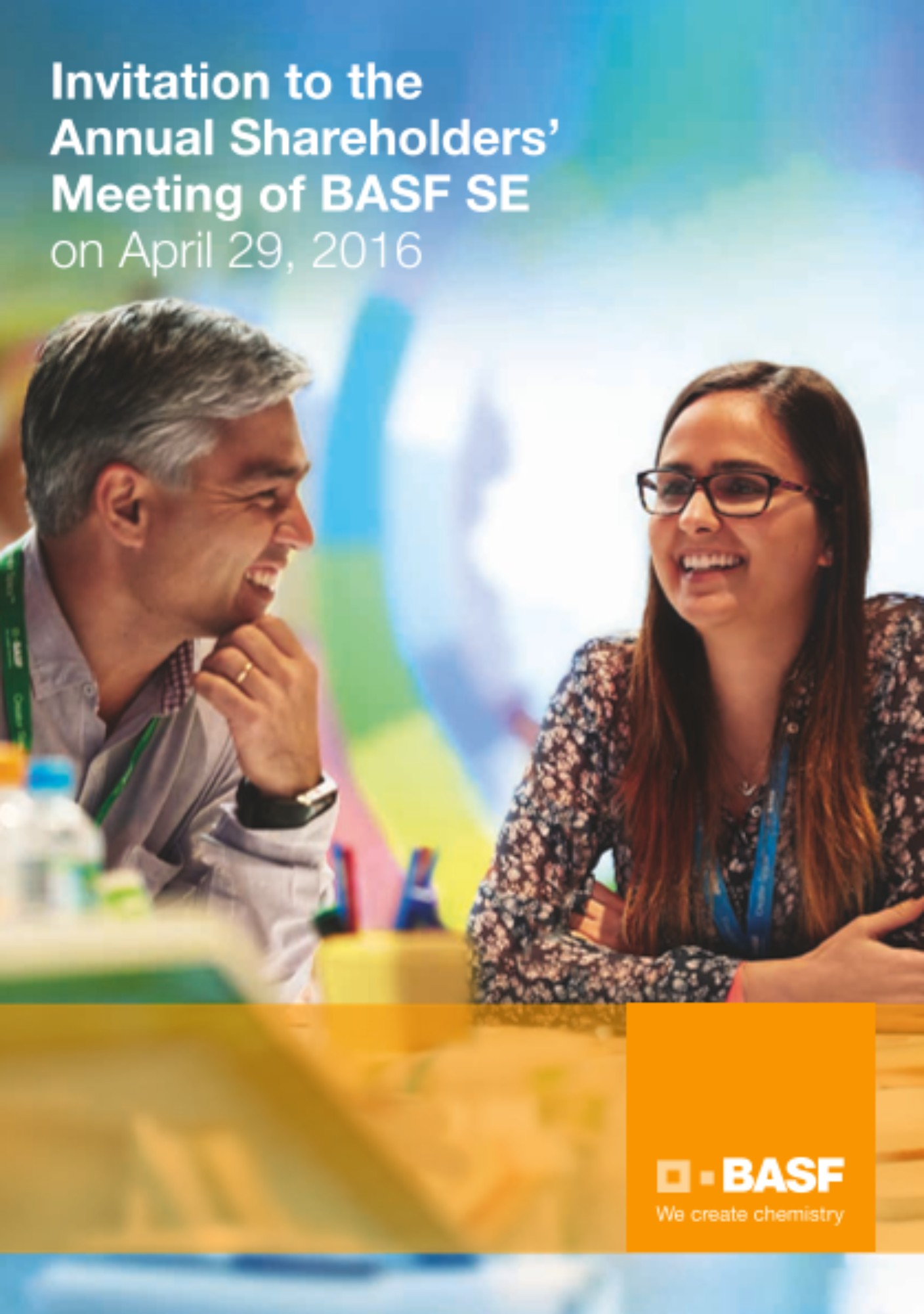 The Annual Shareholders’ Meeting of BASF SE took place at 10 a.m. on Friday, April 29, 2016 in the Congress Center Rosengarten, Mannheim.