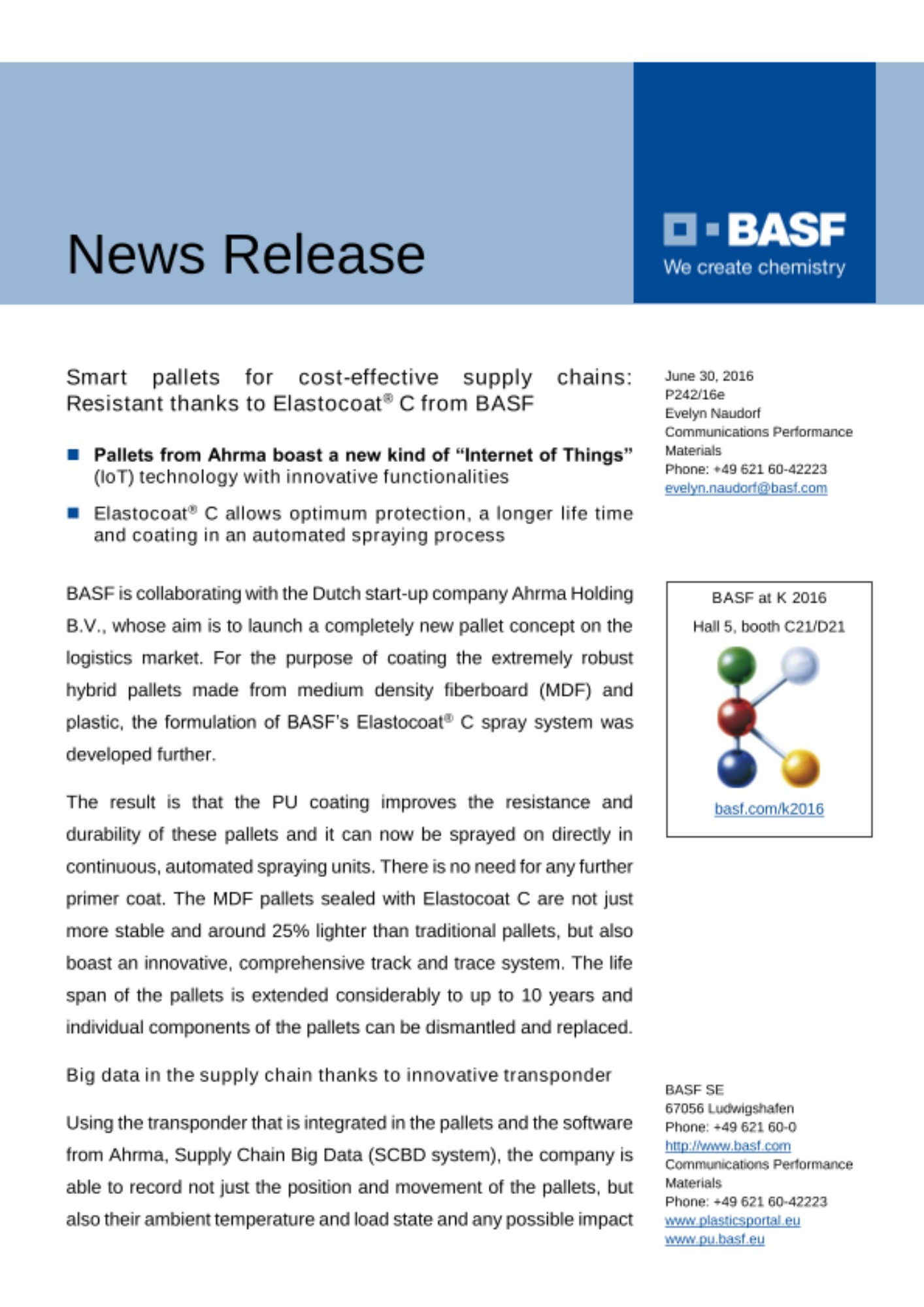 Smart pallets for cost-effective supply chains: Resistant thanks to Elastocoat® C from BASF