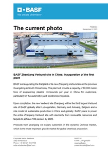 BASF is inaugurating the first plant of its new Zhanjiang Verbund site in the province Guangdong in South China today. The plant will provide a capacity of 60,000 metric tons of engineering plastics compounds per year in China for customers, particularly in the automotive and electronics industries.