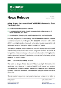 A New Array – the theme of BASF’s 2022-2023 Automotive Color Trends collection