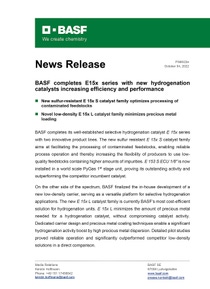 “With the new catalyst families E 15x S and E 15x L we provide two additional solutions for our customer`s specific process needs and optimize the use of precious metal” said Detlef Ruff, Senior Vice President Process Catalysts at BASF SE. “We are now able to offer customers a complete package of innovative solutions and are looking forward to discussing this in person during EPCA.”