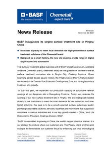 BASF inaugurates its largest surface treatment site in Pinghu, China