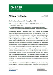- Live on screen: On November 15 and 16 BASF hosts this year's Sustainable Beauty Days