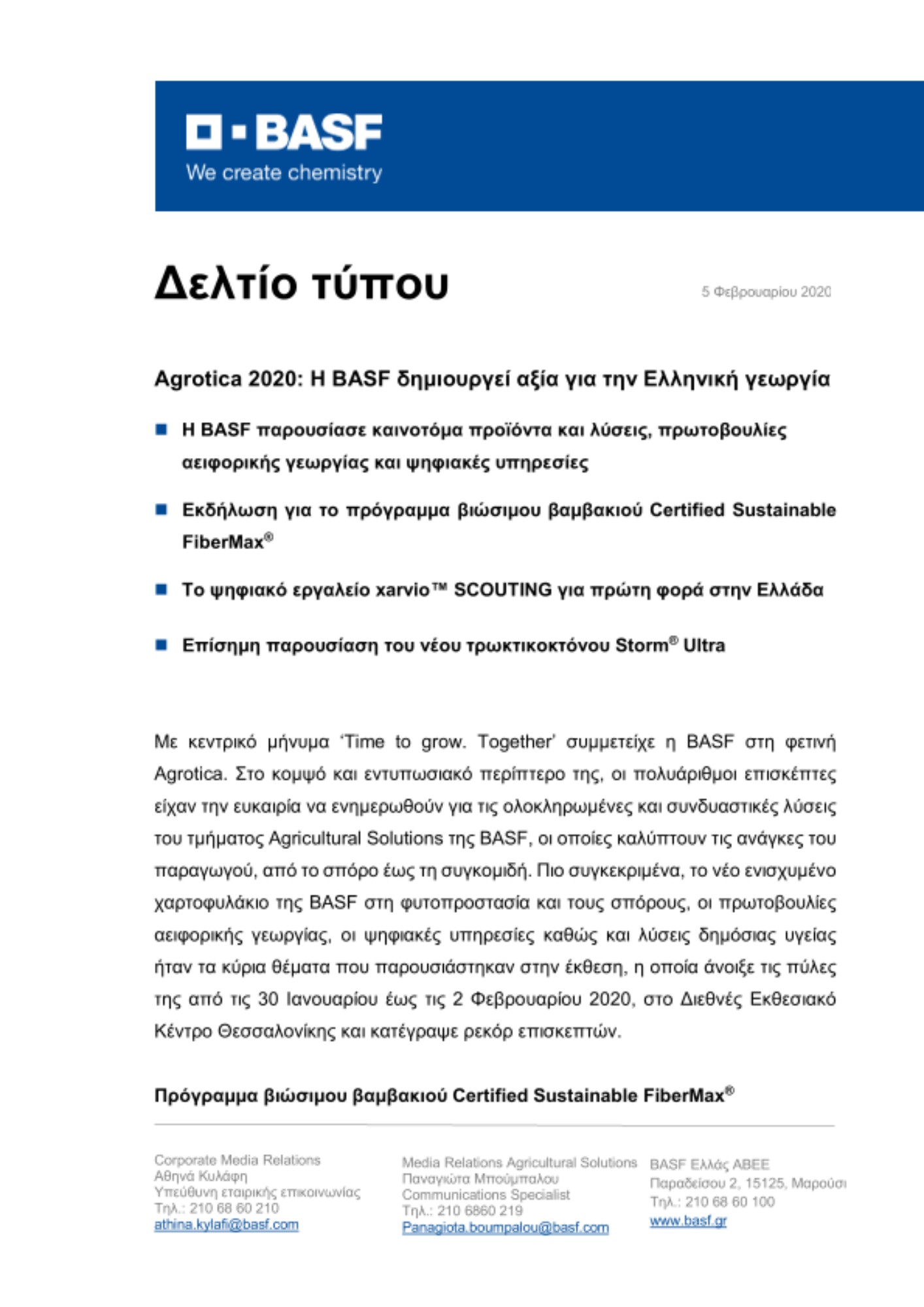 - Η BASF παρουσίασε καινοτόμα προϊόντα και λύσεις, πρωτοβουλίες αειφορικής γεωργίας και ψηφιακές υπηρεσίες