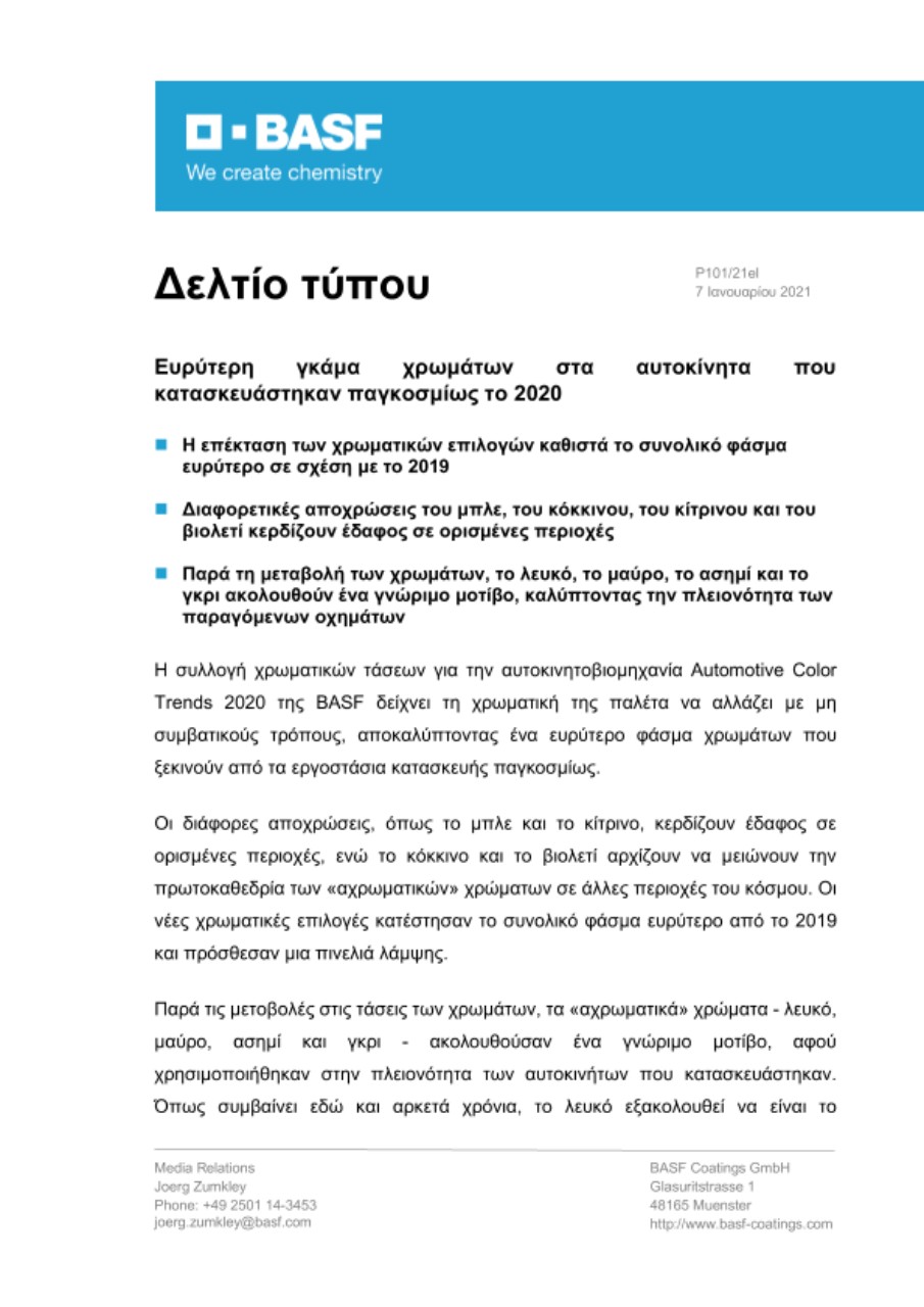 Περισσότερες πληροφορίες στο BASF Color Report 2020 for Automotive OEM Coatings.