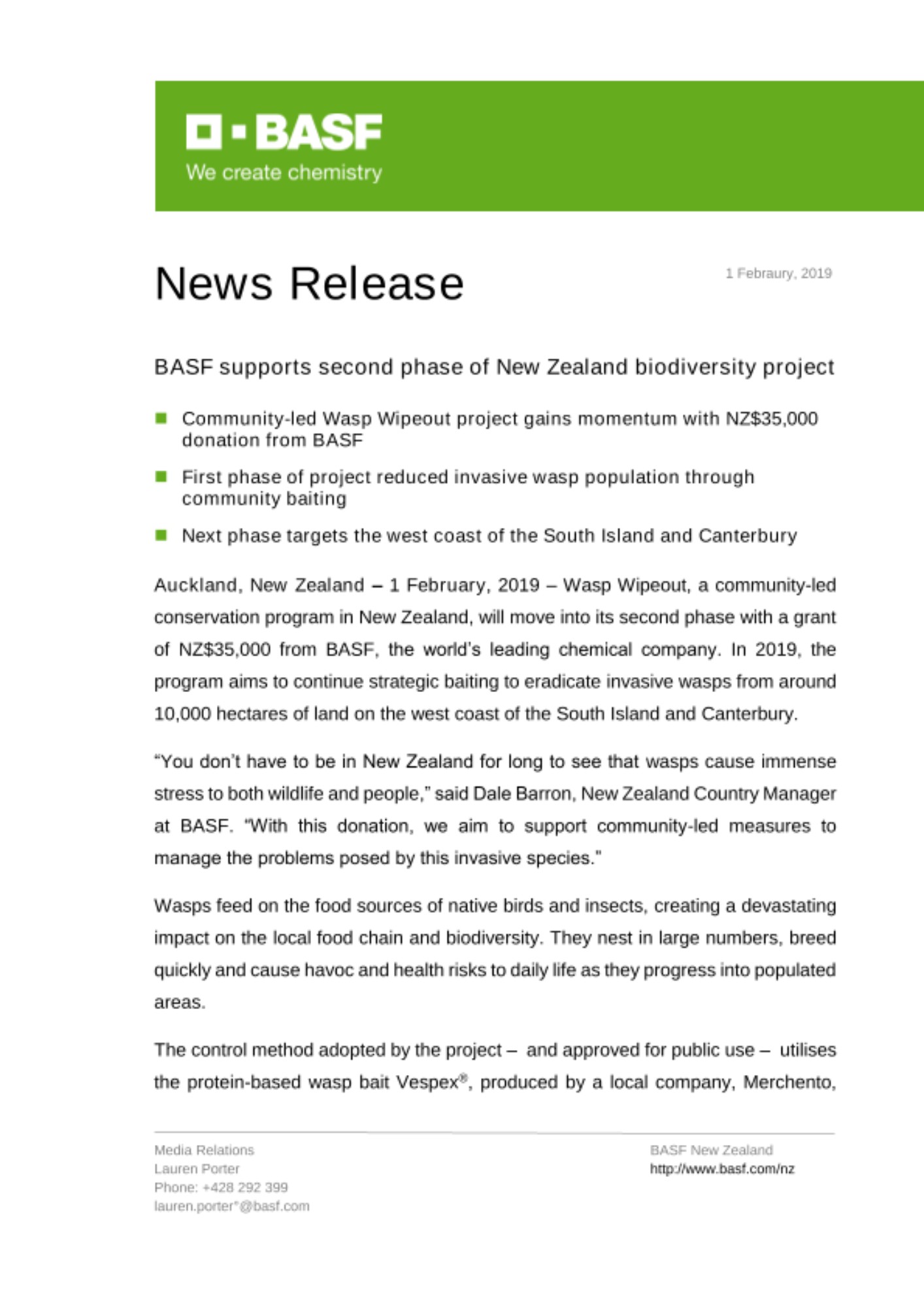 - Community-led Wasp Wipeout project gains momentum with NZ$35,000 donation from BASF